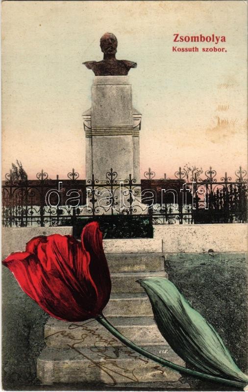 Zsombolya, Jimbolia; Kossuth Lajos szobor, hazafias tulipános montázs ... https://www.darabanth.com/de/31-Gross-Auktion/31.1/Ansichtskarten/Siebenburgen~13126/Zsombolya-Jimbolia-Kossuth-Lajos-szobor-hazafias-tulipanos-montazs-diszitessel-Kiadja-Perls~II1948165
