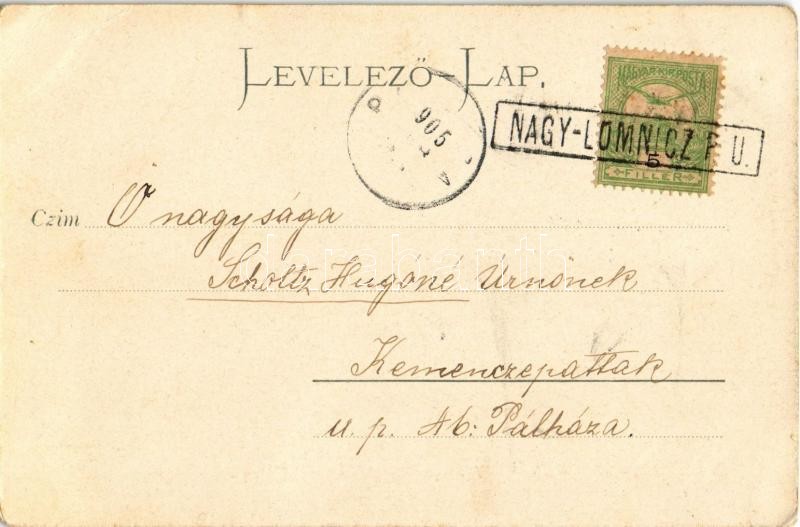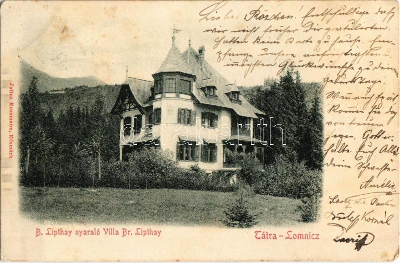 1905 Tátralomnic, Tatranska Lomnica; Báró Lipthay nyaraló. Julius Kusz... https://www.darabanth.com/de/31-Gross-Auktion/31.1/Ansichtskarten/Slowakei~13127/1905-Tatralomnic-Tatranska-Lomnica-Baro-Lipthay-nyaralo-Julius-Kuszmann-kiadasa-villa-EK~II1917734
