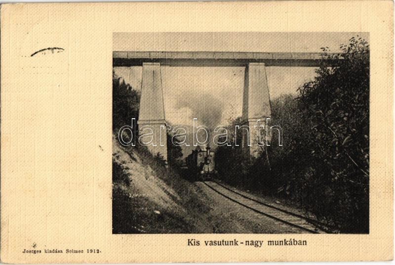 Beschreibung: 1915 Selmecbánya, Schemnitz, Banská Stiavnica; Kis vasutunk nagy munkában. Joerges 1912 / narrow gauge railway with locomotive under the viaduct
