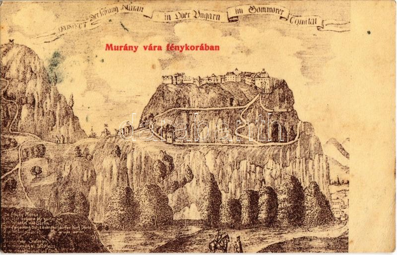 Beschreibung: Murány, Murányalja, Murán; Murány vára fénykorában. Lévai Izsó kiadása / Muransky hrad / castle in its glory days (EK)
