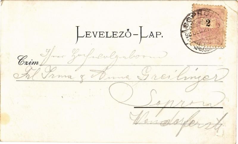 Beschreibung: 1898 Sopron, Oedenburg; Tornacsarnok, F. Rösch és F. Schneider, tornagyakorlat. Török és Kremszner kiadása / Turnhalle. Art Nouveau, floral (EK)