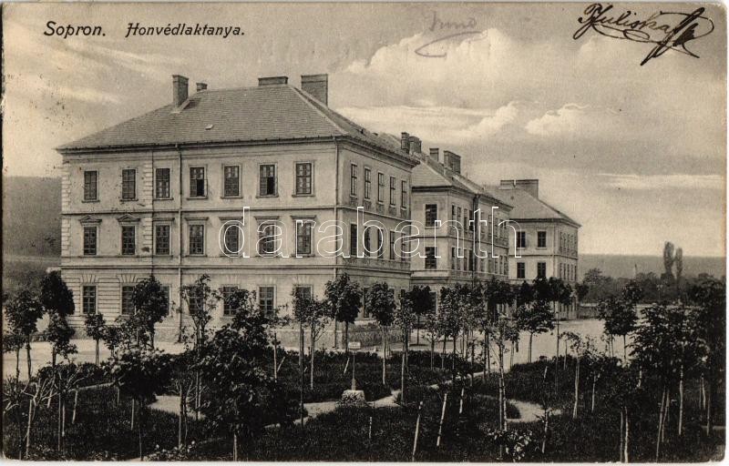 1908 Sopron, Honvéd laktanya. Kummert L. utóda 369. sz. https://www.darabanth.com/de/31-Gross-Auktion/31.1/Ansichtskarten/Ungarn~13125/1908-Sopron-Honved-laktanya-Kummert-L-utoda-369-sz~II1942985