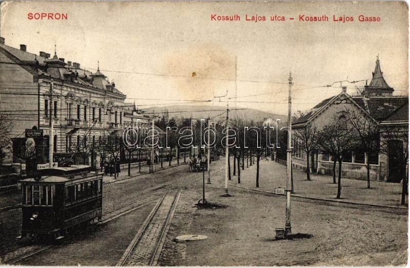 1912 Sopron, Kossuth Lajos utca és villamos, Kraus Ferenc üzlete. Blum... https://www.darabanth.com/de/31-Gross-Auktion/31.1/Ansichtskarten/Ungarn~13125/1912-Sopron-Kossuth-Lajos-utca-es-villamos-Kraus-Ferenc-uzlete-Blum-Nathan-es-fia-kiadasa-EK~II1938897