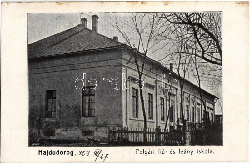 1929 Hajdúdorog, Polgári fiú és leány iskola https://www.darabanth.com/de/31-Gross-Auktion/31.1/Ansichtskarten/Ungarn~13125/1929-Hajdudorog-Polgari-fiu-es-leany-iskola~II1947011