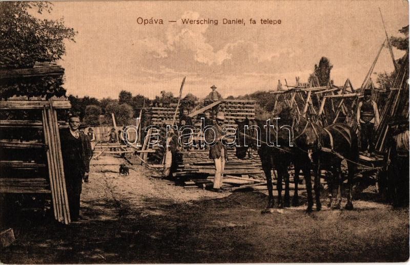 Ópáva, Oppova, Opovo; Werschig Dániel fatelepe és saját kiadása, lovas... https://www.darabanth.com/de/31-Gross-Auktion/31.1/Ansichtskarten/Vojvodina~13131/Opava-Oppova-Opovo-Werschig-Daniel-fatelepe-es-sajat-kiadasa-lovaskocsi-lumber-yard-and-~II1932797