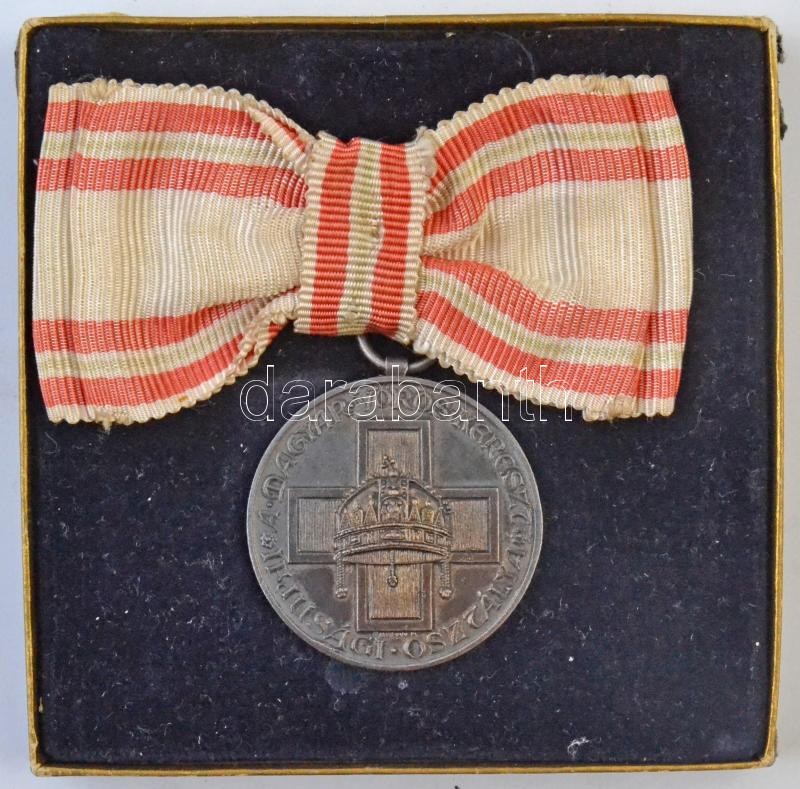 Berán Nándor (1889-1965) 1941. "Magyar Vöröskereszt Ifjúsági Osztálya" ezüstözött Br kitüntetés csokorszalaggal, adományozói okirattal, eredeti "Berán Nándor" dísztokban "A MAGYAR VÖRÖS KERESZT IFJÚSÁGI OSZTÁLYA / MACTE NOVA VIRTUTE PUER!" (31mm) T:1,1- / Hungary 1941. "Youth Department of the Red Cross" silver plated Br decoration, on bow ribbon, with awarding document, in original "Nándor Berán" case. Sign.: Nándor Berán (31mm) C:UNC,AU HV 1197., HP 1455.