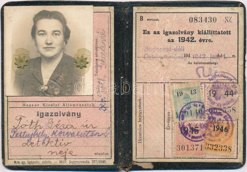 1942-1946 Magyar Királyi Államvasutak (MÁV) félárú jegy váltására jogo... https://www.darabanth.com/de/310-Fernauktion/310.0/Andere-Sammelgebiete/Dokument~17/1942-1946-Magyar-Kiralyi-Allamvasutak-MAV-felaru-jegy-valtasara-jogosito-fenykepes-ig~II1690400