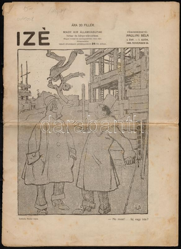 1909 Izé I. évfolyam 7. szám, főszerkesztő: Paulini Béla, hátoldalon P... https://www.darabanth.com/de/310-Fernauktion/310.0/Andere-Sammelgebiete/Drucksachen~28/1909-Ize-I-evfolyam-7-szam-foszerkeszto-Paulini-Bela-hatoldalon-Paulini-grafikajaval-~II1689216
