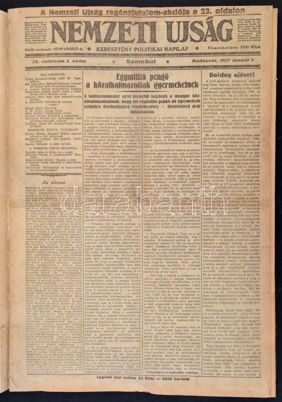 1927 A Nemzeti Újság komplett évfolyama bekötve, jó állapotban https://www.darabanth.com/de/310-Fernauktion/310.0/Andere-Sammelgebiete/Drucksachen~28/1927-A-Nemzeti-Ujsag-komplett-evfolyama-bekotve-jo-allapotban~II1688291