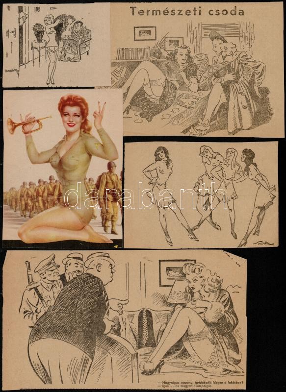 Beschreibung: Art deco erotikus grafikák, karikatúrák - La Vie Parisienne, 2 címlap (Pesti Izé, Szabad Száj), kivágások lapokon, illetve nem felragasztva