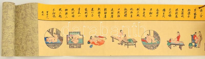 Beschreibung: Japán erotikus és pornográf jelenetek papírtekercsen, nyomat, vászon borítással, 108x15 cm