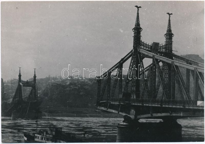 1945 A Szabadság híd romokban, Sztálin fotóval. 16x9 cm https://www.darabanth.com/de/310-Fernauktion/310.0/Andere-Sammelgebiete/Foto~20/1945-A-Szabadsag-hid-romokban-Sztalin-fotoval-16x9-cm~II1692360