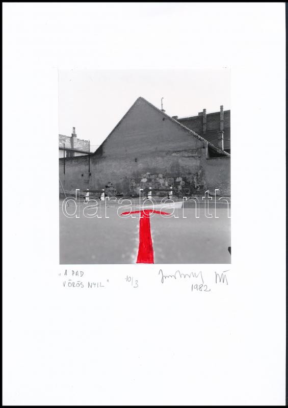 Beschreibung: 1982 Jankovszky György(1946-): Budapest, A pad vörös nyíl 10/3, pecséttel jelzett fotó, feliratozva, kartonra kasírozva, 13x14 cm