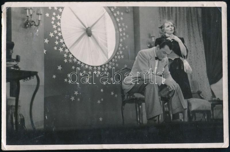 Beschreibung: Jávor Pál (1902-1959) színész egy színházi előadáson partnerével, sarkain törésnyomokkal, 6x10 cm