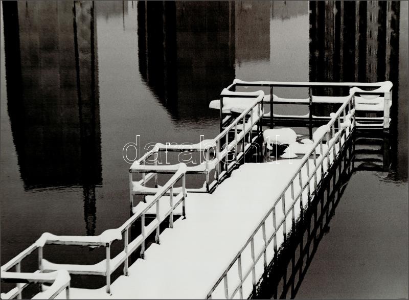 Beschreibung: cca 1974 Zsigri Oszkár (1933-?) budapesti fotóművész Kikötő című, feliratozott, vintage alkotása, kasírozva, 29,5x39 cm