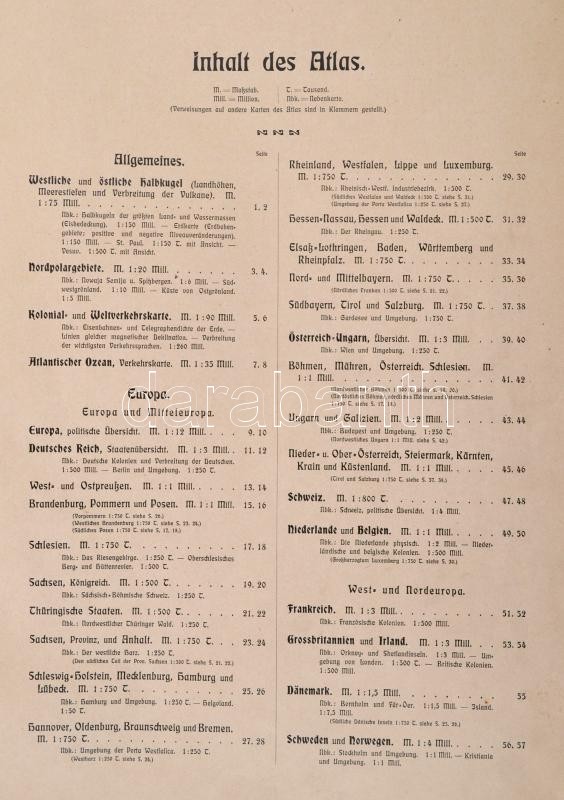 Beschreibung: Velhagen & Klasings Neuer Volks- und Familienatlas. Szerk.: Scobel, A[lbert]. Bielefeld - Leipzig, 1901, Verlag von Velagen & Klasing. Szétvált fűzéssel, de hiánytalan