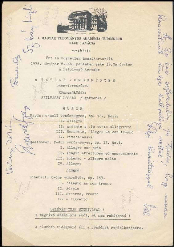 1976 a Tátrai Vonósnégyes tagjainak aláírásai műsorlapon https://www.darabanth.com/de/310-Fernauktion/310.0/Andere-Sammelgebiete/Signatur~19/1976-a-Tatrai-Vonosnegyes-tagjainak-alairasai-musorlapon~II1689218