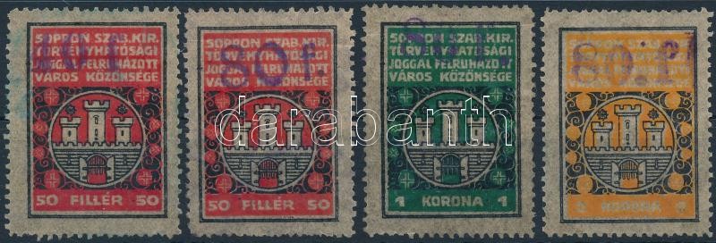 1927 Sopron illetékbélyeg 40f/50f, 80f/50f, 80f/1K, 80f/2K kék felülny... https://www.darabanth.com/de/310-Fernauktion/310.0/Andere-Sammelgebiete/Stempelmarken~16/1927-Sopron-illetekbelyeg-40f50f-80f50f-80f1K-80f2K-kek-felulnyomassal-29000~II1687735