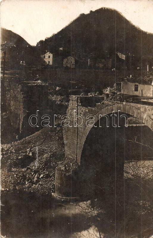 ~1917 Tolmin, Tolmein; lerombolt hídfő nyugatra az Isonzótól / WWI K.u... https://www.darabanth.com/de/310-Fernauktion/310.0/Ansichtskarten/Militaria~300073/7E1917-Tolmin-Tolmein-lerombolt-hidfo-nyugatra-az-Isonzotol-WWI-Kuk-military-destroyed-br~II1689886