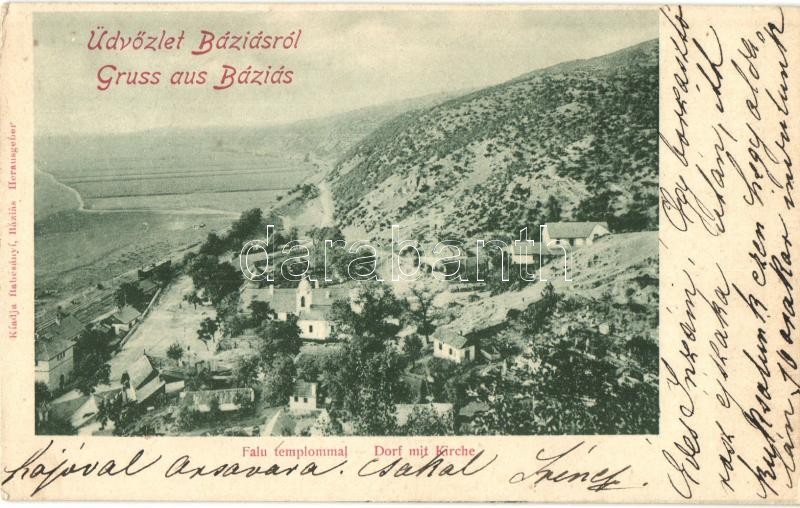 1899 Báziás, falu templommal / village with church https://www.darabanth.com/de/310-Fernauktion/310.0/Ansichtskarten/Siebenburgen~300006/1899-Bazias-falu-templommal-village-with-church~II1690382
