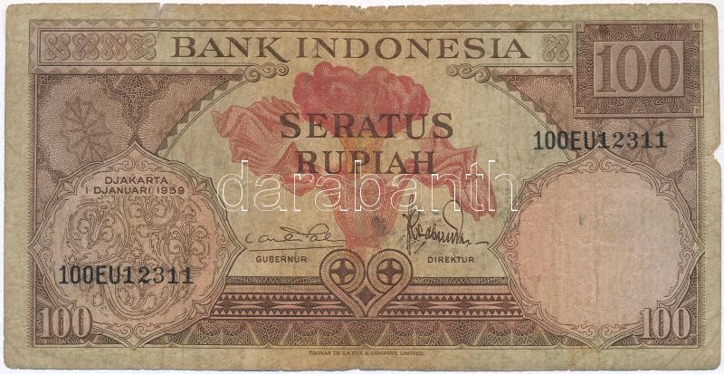 Beschreibung: Indonézia 1959. 100R T:III-,IV ragasztott