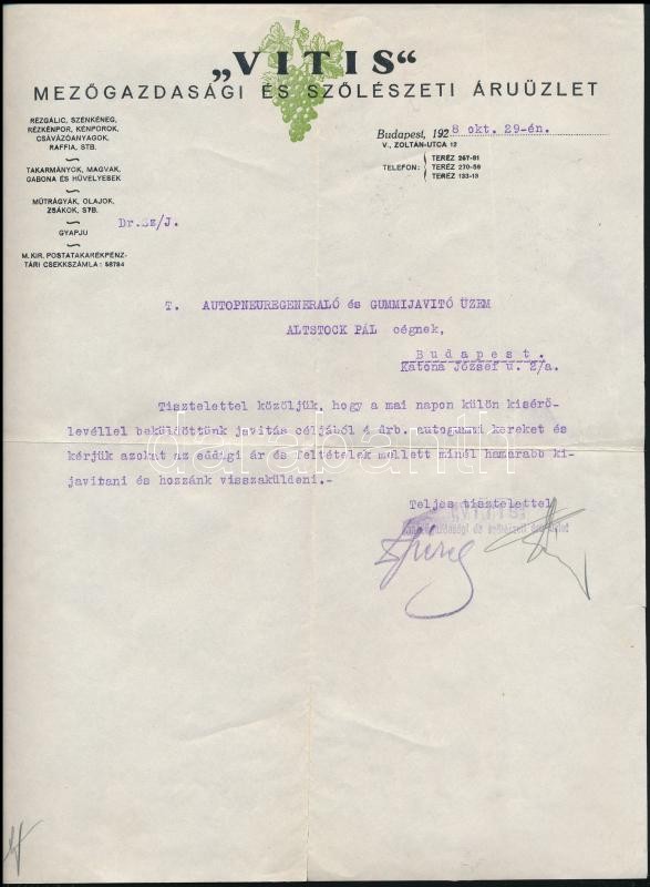 1928 Vitis Mezőgazdasági és Szőlészeti Áruüzlet, díszes fejléces levél... https://www.darabanth.com/de/311-Fernauktion/311.0/Andere-Sammelgebiete/Dokument~300016/1928-Vitis-Mezogazdasagi-es-Szoleszeti-Aruuzlet-diszes-fejleces-level-29-5x22-cm~II1701435
