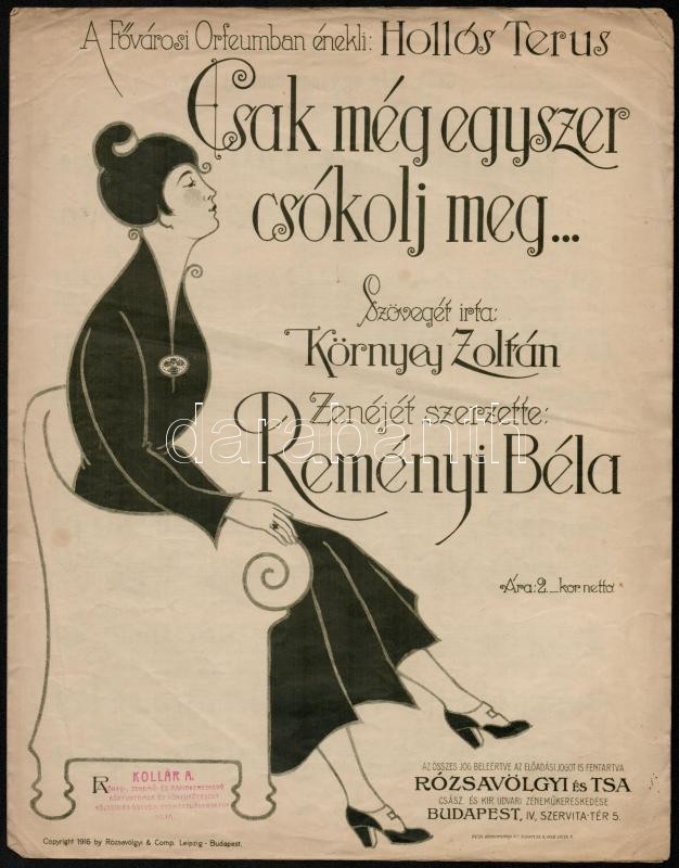 1916 Csak még egyszer csókolj meg...,szecessziós borítójú kotta, 34x26... https://www.darabanth.com/de/311-Fernauktion/311.0/Andere-Sammelgebiete/Drucksachen~300050/1916-Csak-meg-egyszer-csokolj-meg-szecesszios-boritoju-kotta-34x26-5-cm~II1704128