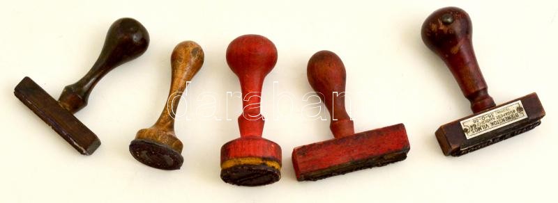 Beschreibung: 5 db különféle pecsétnyomó, fa, többek közt: Eötvös Loránd Tudományegyetem, Polgári Védelem
