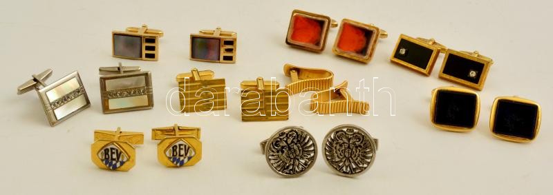 Beschreibung: 9 pár fém mandzsetta, kő berakásokkal, tűzzománc díszítéssel, dobozban, különböző méretben