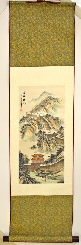 Beschreibung: Kínai fali tekercskép, jelzett tájképes nyomattal, 110x30 cm.
