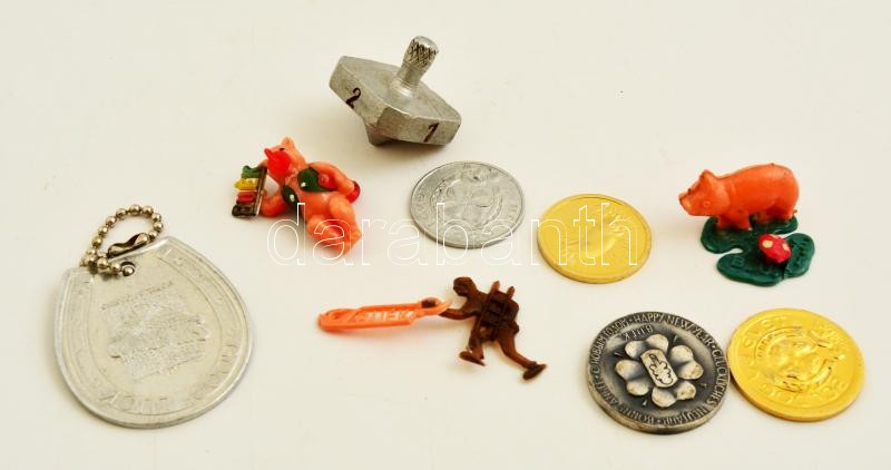 Szerencsehozó tárgyak tétel, összesen 8 db, pörgettyű, szerencsepénzek... https://www.darabanth.com/de/311-Fernauktion/311.0/Andere-Sammelgebiete/Flohmarkt~300011/Szerencsehozo-targyak-tetel-osszesen-8-db-porgettyu-szerencsepenzek-malac-figurak-kulC3~II1695231
