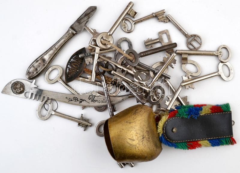 Vegyes bolha tétel, kb. 20 db kulcs, kések, dugóhúzó, kolomp https://www.darabanth.com/de/311-Fernauktion/311.0/Andere-Sammelgebiete/Flohmarkt~300011/Vegyes-bolha-tetel-kb-20-db-kulcs-kesek-dugohuzo-kolomp~II1695431