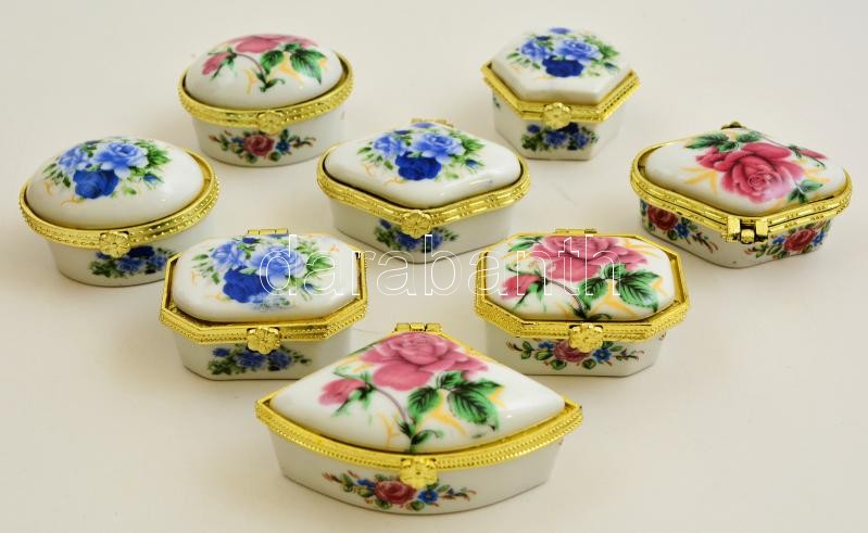 Beschreibung: Virágmintás porcelán ékszertartó dobozkák, 8 db, hibátlanok, kb. 5x4,5 cm
