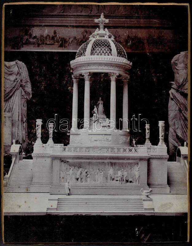 Beschreibung: 1901-1902 Stróbl Alajos kitüntetett szoborterve Erzsébet királyné emlékére, kartonra ragasztott, hidegpecséttel jelzett fotó, 36x28 cm
