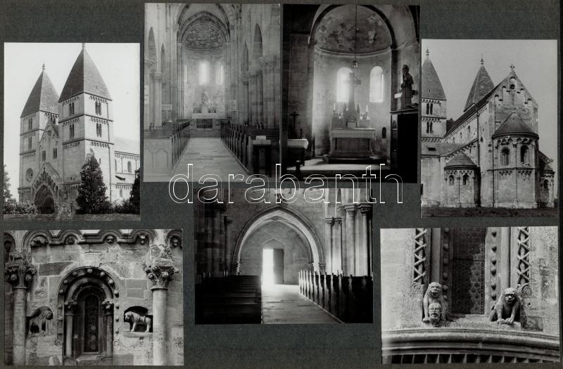 Beschreibung: A jáki templomot ábrázoló fotók, 8 db (7 db albumlapra ragasztva), 9x11 és 17x23 cm közötti méretekben