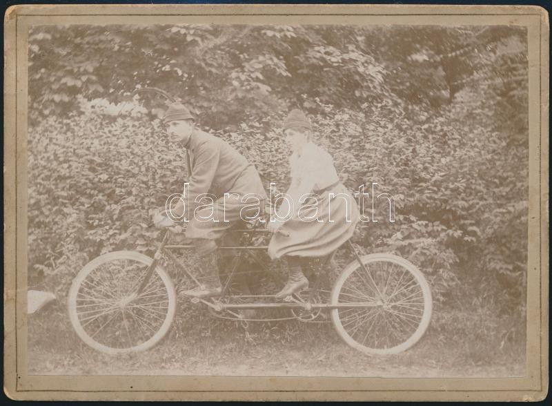 cca 1910 Tandem kerékpárosok, keményhátú fotó, 13,5x18,5 cm https://www.darabanth.com/de/311-Fernauktion/311.0/Andere-Sammelgebiete/Foto~300019/cca-1910-Tandem-kerekparosok-kemenyhatu-foto-13-5x18-5-cm~II1697429