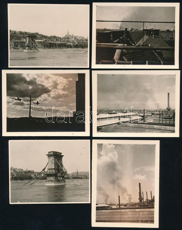 Beschreibung: cca 1944 Budapest, Csepel, A város és a Weiss Manfréd Acél- és Fémművek bombázása, 6 db fotó, 6x4,5 cm