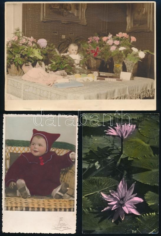 Beschreibung: cca 1960 Kézzel színezett fényképek, 4 db vintage fotó, 12,5x17 cm és 13,5x8,5 cm