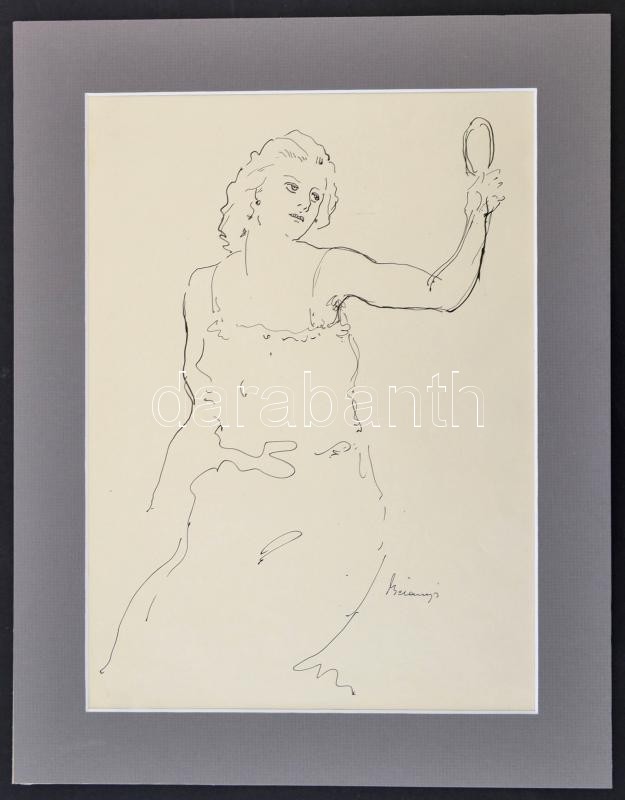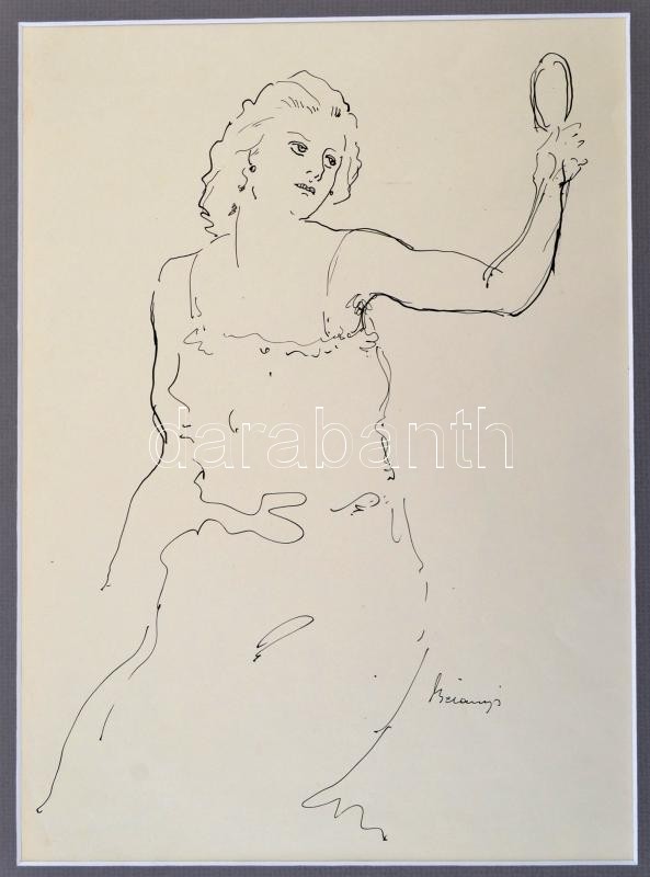 Belányi Viktor (1877-1955): Nő tükörrel, tus, papír, jelzett, paszpart... https://www.darabanth.com/de/311-Fernauktion/311.0/Andere-Sammelgebiete/Gemalde-und-Grafiken~500089/Belanyi-Viktor-1877-1955-No-tukorrel-tus-papir-jelzett-paszpartuban-32-5C39723-5-cm~II1682369