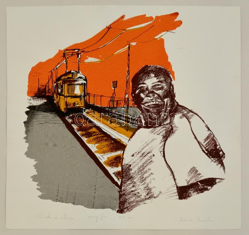 Borsos Veronika (?-): Turista és villamos. Szitanyomat, papír, jelzet... https://www.darabanth.com/de/311-Fernauktion/311.0/Andere-Sammelgebiete/Gemalde-und-Grafiken~500089/Borsos-Veronika--Turista-es-villamos-Szitanyomat-papir--jelzett-41C39742-cm~II1695381