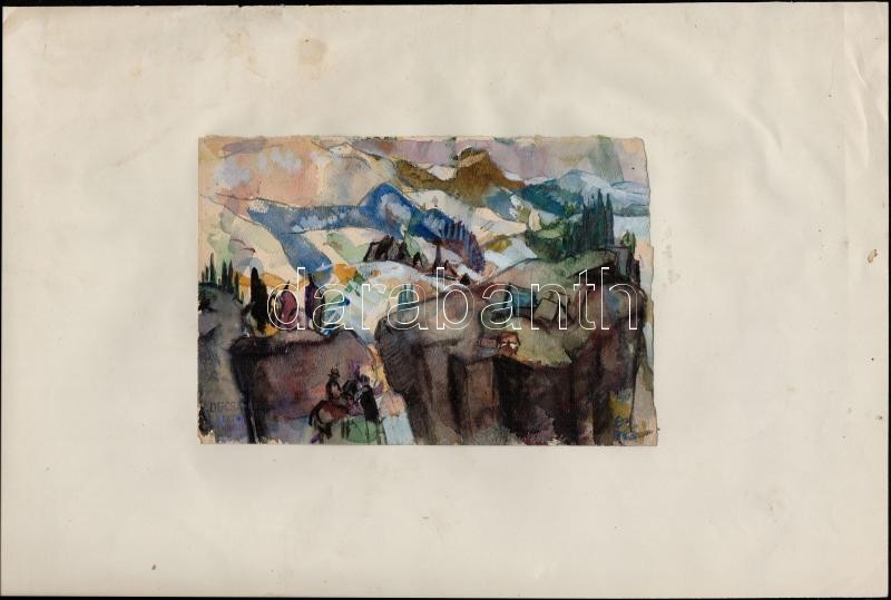 Beschreibung: Ducsay Béla (1893-1967): Kis település a hegyek között. Akvarell, papír, jelzett, kartonra ragasztva, 15x22 cm