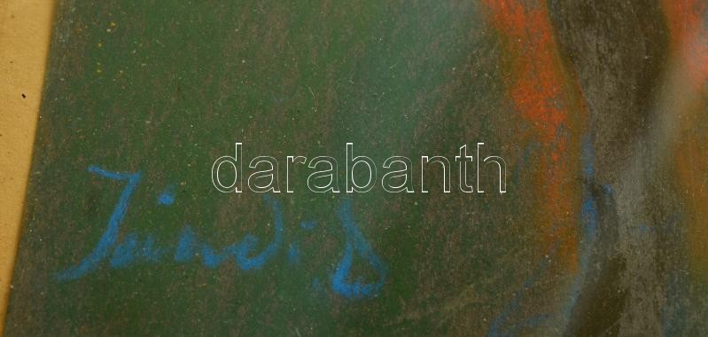 Beschreibung: Jándi jelzéssel: Kalapos férfiak. Pasztell, papír, üvegezett keretben, 24×32 cm