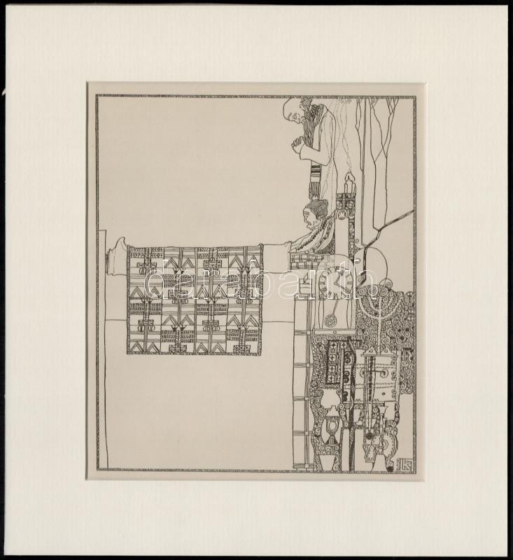 Beschreibung: Kozma Lajos (1884-1948): Ima, cinkográfia, papír, jelzett a cinkográfián, KL 909. paszpartuban, 20×17 cm