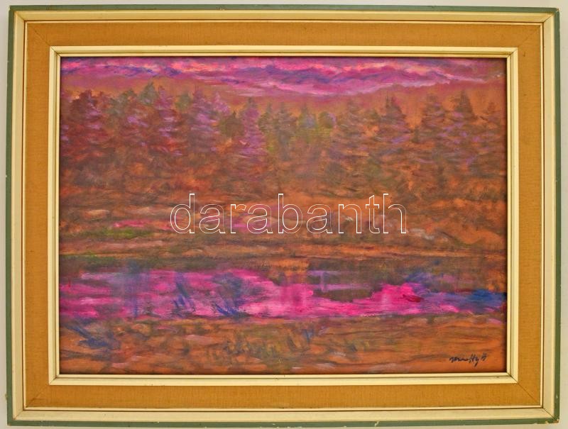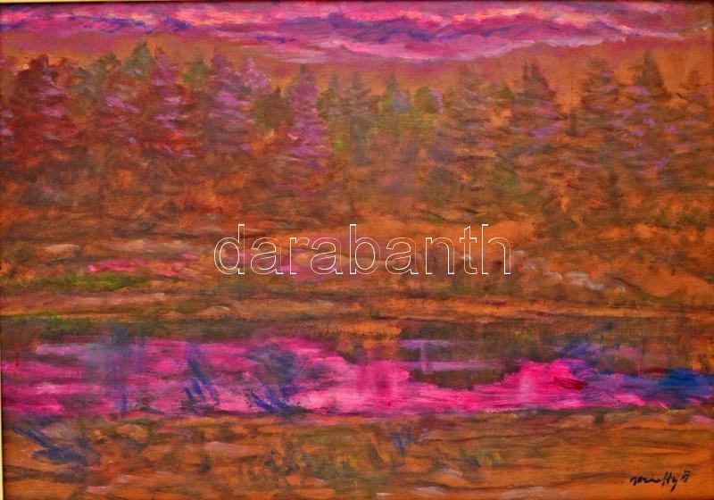 Beschreibung: Márffy jelzéssel: Lila fenyves, olaj, farost, keretben, 48×71 cm