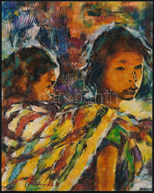 Beschreibung: Olvashatatlan jelzéssel: Filippínók. Olaj, farost, 25x20 cm