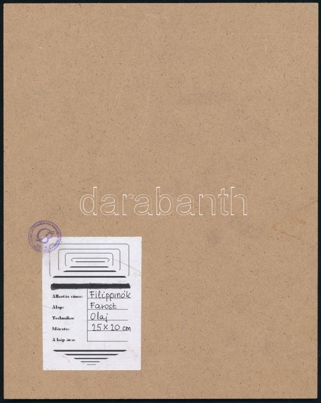 Olvashatatlan jelzéssel: Filippínók. Olaj, farost, 25x20 cm https://www.darabanth.com/de/311-Fernauktion/311.0/Andere-Sammelgebiete/Gemalde-und-Grafiken~500089/Olvashatatlan-jelzessel-Filippinok-Olaj-farost-25x20-cm~II1695784