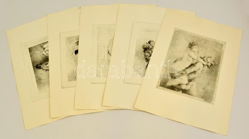 Beschreibung: Zichy Mihály (1827-1906): 5 db erotikus jelenet, cinkográfiáról készült mélynyomás, papír, jelzés nélkül, 17×24 -- 20×27 cm