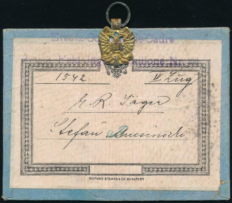 Beschreibung: cca 1880-1890 Tábori Vadászezred igazolványa fém jelvénnyel