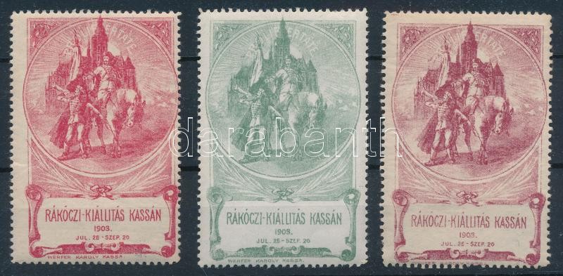 Beschreibung: 1903 Rákóczi kiállítás Kassán 3 klf színű levélzáró