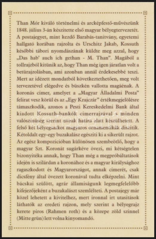 Beschreibung: 2017 Burján - essay, hátoldalán a bélyegterv történetének leírása